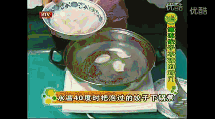 此时,锅中加水开火,当水温为40度时,将冷水中的饺子捞出,温水入锅煮。