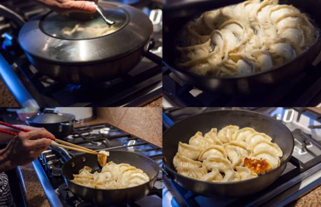 第三步: 盖上盖焖制,不一会香喷喷的锅贴饺就做好了!