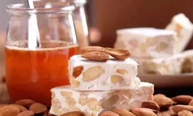 拥有超过500年历史的牛轧糖是当年阿拉伯侵略对西班牙的又一馈赠。喜爱甜食的摩尔人用蜂蜜、糖、杏仁、榛果、核桃和开心果制成的牛轧糖,现在已经成为西班牙的代表性美食。即使不是圣诞季,每次去西班牙也都要买上好几盒牛轧糖带回家。