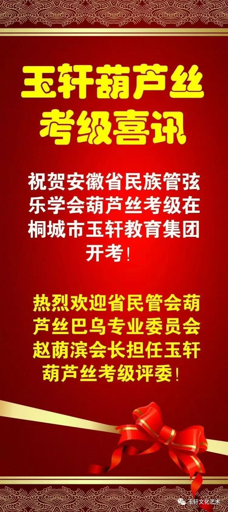 2017年8月20日,桐城市葫芦丝考级在“安徽省艺术特色教育基地、桐城市葫芦丝专业考级培训基地”——玉轩教育集团开发区总部举行。
