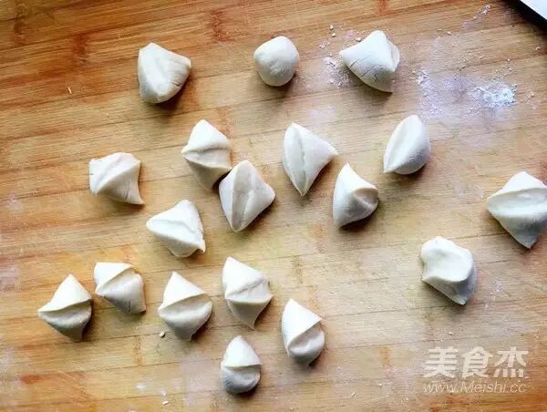 面团取出再揉光滑后,切成比饺子皮稍大些的小剂子