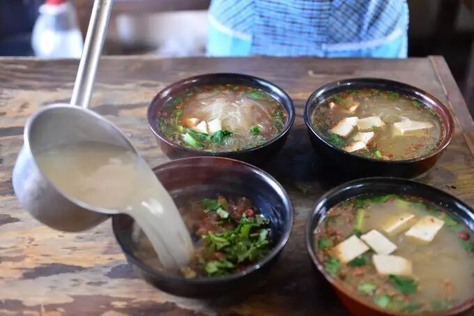 来了袁家村一定要吃粉汤羊血,而且是老吕粉丝羊血,味道不错,辣辣的,不过不能吃辣的也可以少放辣椒。