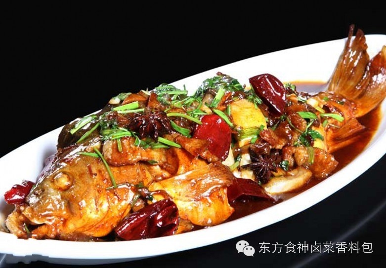 √ 制作:1.将鲤鱼宰杀制净,一切为二。2.高压锅烧热,放入大豆油烧至五成热,放入五花肉炒至金黄色,放入A料煸炒出香,倒入B料烧开,放入C料调味,下入鲤鱼,倒入老汤,中火压12分钟,放气,打开盖子,大火收汁,出锅,装盘上桌即可。