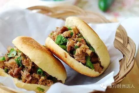 肉夹馍是古汉语“肉夹于馍”的简称,中国西北特色小吃之一,以陕西地区的“腊汁肉夹馍”(猪肉)和宁夏地区的“羊肉肉夹馍”为主。腊汁肉夹馍是陕西省名西府小吃和西安著名小吃。每个摊前摆有炉子,和西北其他地方的馍没有区别。但是新出锅的羊肉味道比冻牛肉饼可要好多了,加入羊肉和菜,分量很大,极力推荐品尝。
