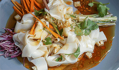 宁夏凉皮松软、筋道,口感润滑,再加上独特的配料,来上一口人间极致美味