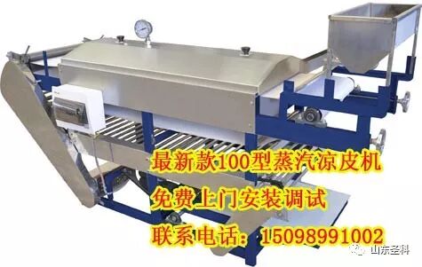 100型蒸汽凉皮机是一款全自动蒸汽凉皮机,加热方式可选择锅炉、燃气或者是三相电加热,双速输送,买机器送配方和技术光盘。厂家直销,支持上门服务。济南100型蒸汽凉皮机开始出售中,马上到2018年,年后想做凉皮生意的客户可以选择年前订购,年前购买优惠多,技术人员能及时上门调试,年后要凉皮机的客户多都是按照号来调试。