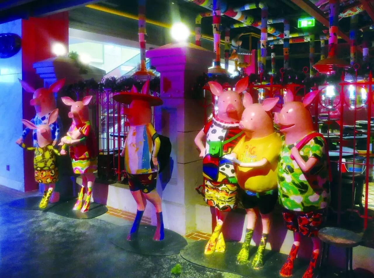 店内装修突出萌猪特色,连棚顶的排烟管道也趴着几只小猪修理工,让客人觉得新鲜感十足。