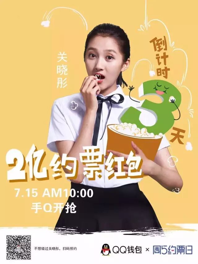 此次与关晓彤联手的“约票红包”大派送活动,是“QQ钱包周五约票日——暑期季”的热情开场。整个夏日,周五约票日将陪伴年轻用户左右,提供超值“暑价”的电影优惠。