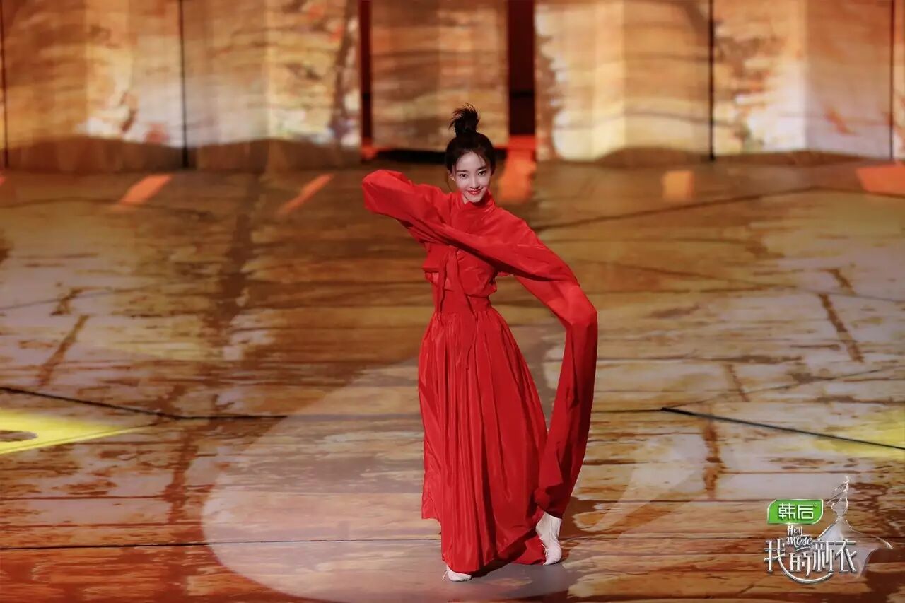 一袭鲜红水袖惊艳全场,