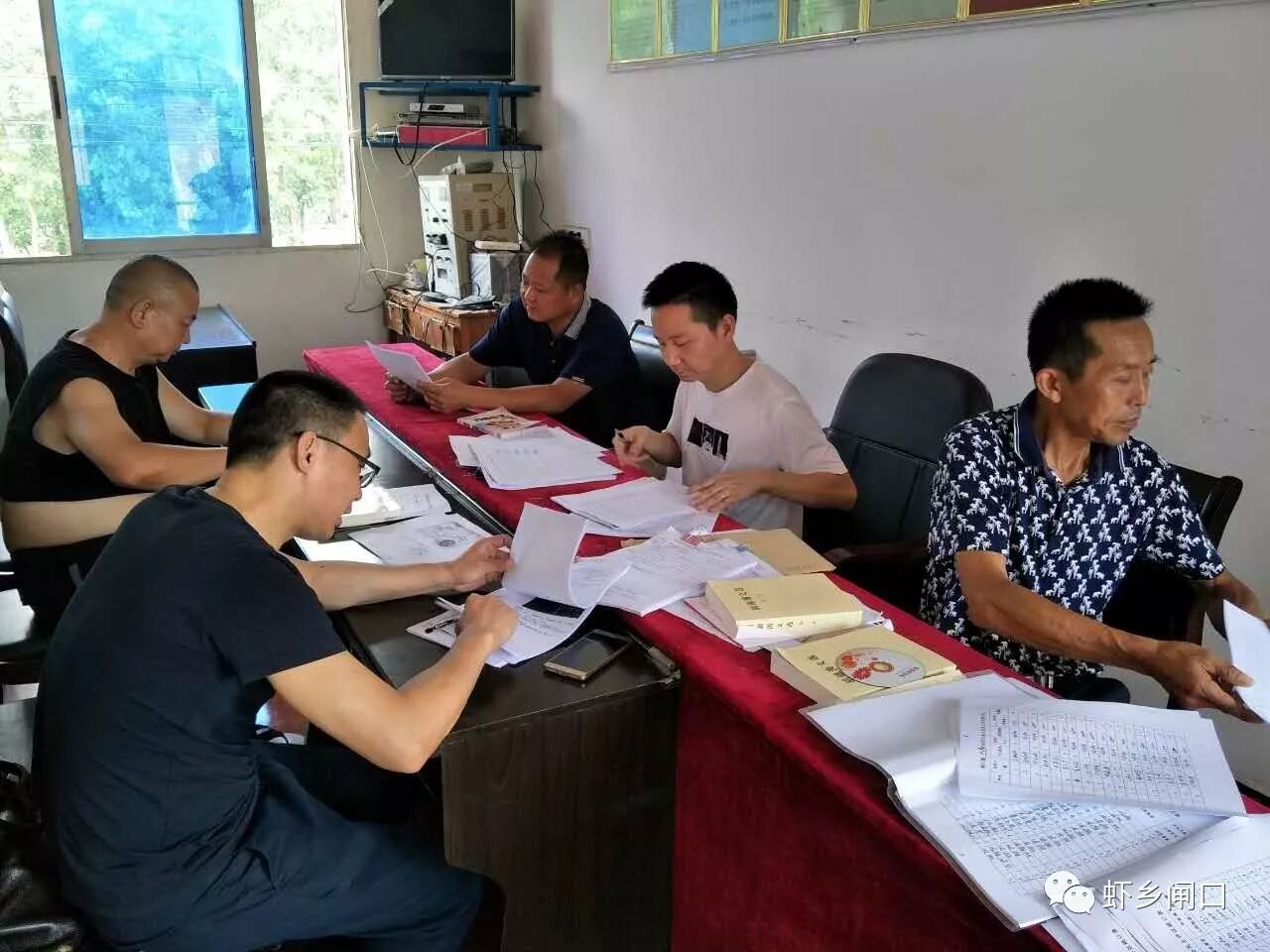 潘道虎同志和驻村干部、村干部一起整理贫困户档案资料