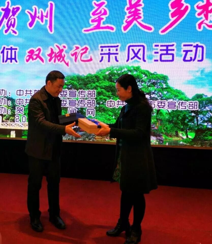 贺州和梧州山水相依,生活往来十分密切,据介绍,此次活动邀请梧州等市有影响力的媒体记者走进贺州,开展“双城记”主题采风,是为了加强与兄弟地市间的交流合作,增进彼此了解和友谊。在启动仪式上,梧州与贺州两市的代表还互赠了城市形象宣传片及专题片。