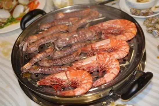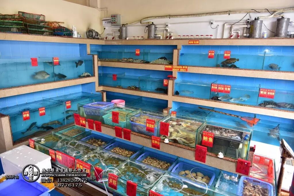 入门的右手边便是一小片海鲜区,展现在眼前的是各种鱼,虾,蟹,贝类,一应俱全,俨然一个小小的海底世界。在这里吃的海鲜都是现捞现上桌,一个字:活!两个字:鲜活!