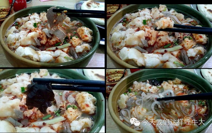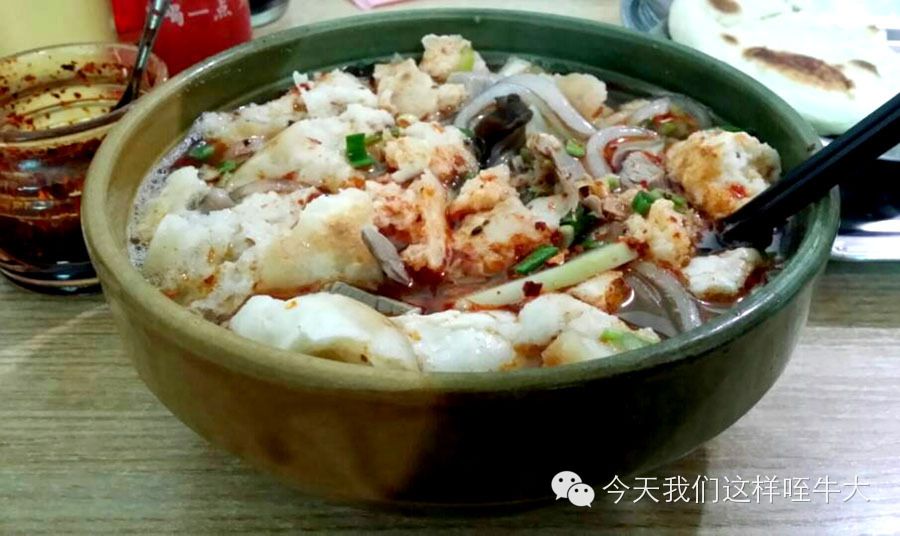 现在开启“揪馍模式”!忍不住口水,迫不及待想吃的人揪大块儿;慢条斯里不急吃的人揪小块儿;不喜欢吃泡软馍的人可以边吃边泡,这样的馍外软内韧有嚼劲。然后把辣子一加,开吃吧!