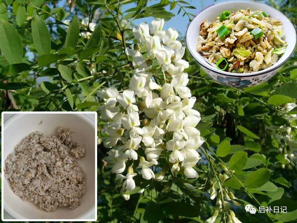 槐花饭:曲沃人叫槐花gu luei,陕西人叫麦饭,北京人则叫ba lei er,由此看来这道春天的花儿菜,在各地都是受到了民众的喜爱。其做法是:将洗净的槐花沥干水分加入二分之一的面粉拌匀,拌匀后放入笼屉中,然后在槐花堆中用筷子扎几个出气孔,大火蒸十分钟即可。 吃的时候可以炒着吃,也可以直接浇上蒜汁、醋、盐和香油即可。一碗花香四溢,清甜软糯的gu luei 大功告成。记得小时候槐花刚开,摘上一兜白色的小花回到家中,妈妈用清水将花儿洗净,不等上锅整个厨房就已充满了槐花的清香。这两年四处寻找未被污染的槐花,欲再次品尝这花香美味,却每每落空留下了不少遗憾。