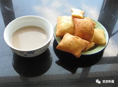 新疆奶茶和的奶茶是不一样的,砖茶牛奶和盐煮成闻起来很香 味道有点咸 有不一样的滋味。