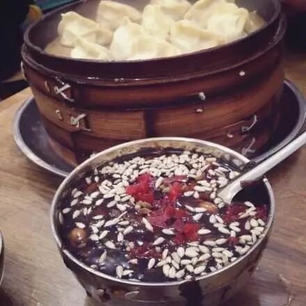 这里的泡馍有讲究:糖蒜是送的,粉丝很多,重点是馍,要一点一点掰。