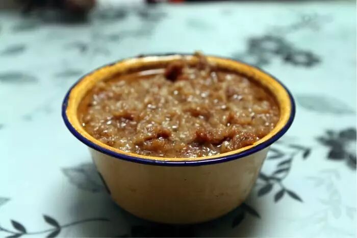 牛肉裹着粉糊,先炸后蒸,大火蒸得肉酥烂,盛在小铁盆里,入口即化。顺便提一嘴,他家的泡菜酸得爽口!