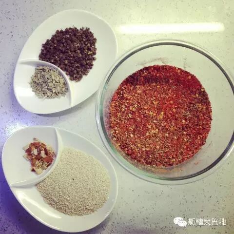 锅烧热后放菜籽油(这个不勉强,如果没有菜籽油,什么油都行),大概只能烧到4成,你就要赶紧把除了干辣椒面之外的其余四样东西放进油里微微炸,千万不要炸糊了!!!整体油温一定不要超过7成,看见油有开始热的迹象(不冒烟,但放进去炸的东西开始冒油泡)立即把油浇到盛有干辣椒面的碗里(碗一定要耐热啊~),这油温会慢慢在碗里把干辣椒面逼出红油,同时辣椒还不发糊发黑。所以油温千万不能高,太热的油一下去,辣椒马上就炸糊了,你得到的只能是一碗黑不拉几的发苦油辣子。