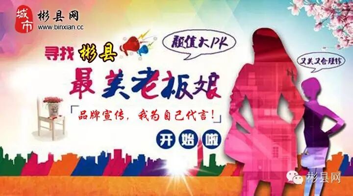 由彬县网发起的寻找彬县最美女老板娘活动报名火热进行中!加微信公众号“彬县网”,回复“老板娘”即可参与报名,已经报名成功的老板娘,请稍安勿躁,随时关注彬县网官方微信的投票公告*每期我们选择投票前三名进入决赛,所以,老板娘们和女店长请记住自己的编号,除了自然投票,建议老板娘们和女店长要努力为自己拉票哦)