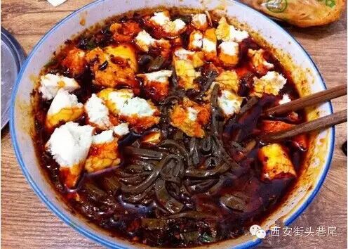 说是凉粉其实就是凉粉,但与通常概念里的吃法所不同的是用凉粉加上特制的卤汁泡着馍吃。三伏天地道的西安男人会光着膀子享用只有在西安才可以吃到的卤汁凉粉。