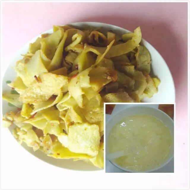 甜甜的米酒,带着香味的蛋花,再来一碗炒豆丝,这样的早餐,让人百吃不腻啊。
