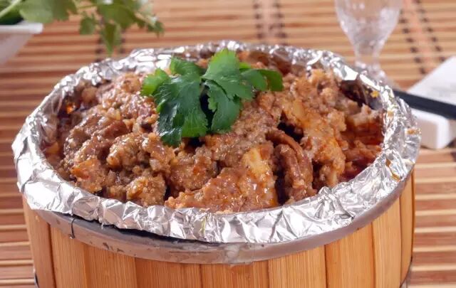 青青江滩草,养的好黄牛。岳口牛肉很有名气,由此演变而来的系列特色菜品也很多,粉蒸牛肉就是其中一种。