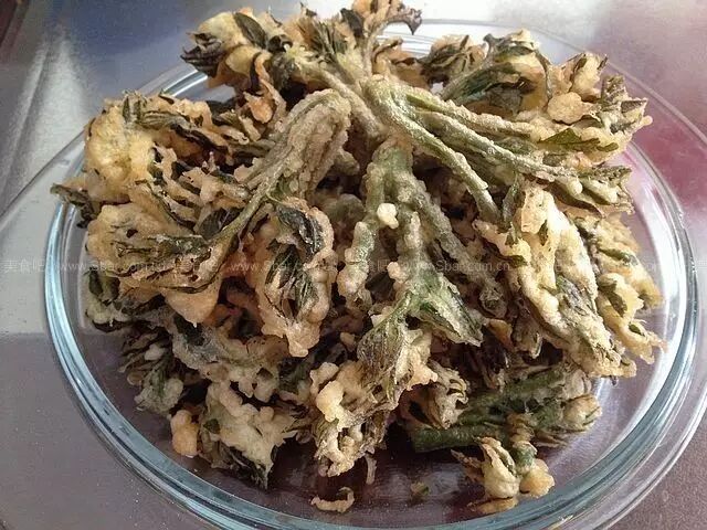 金黄酥脆的椿芽儿鱼在灯光下闪着油汪汪的光,久违的清新植物香气混合着面粉的醇香诱惑着味蕾,肚里馋虫开始骚动。迫不及待地用手捻起一块一口咬下去,嗯!真香!