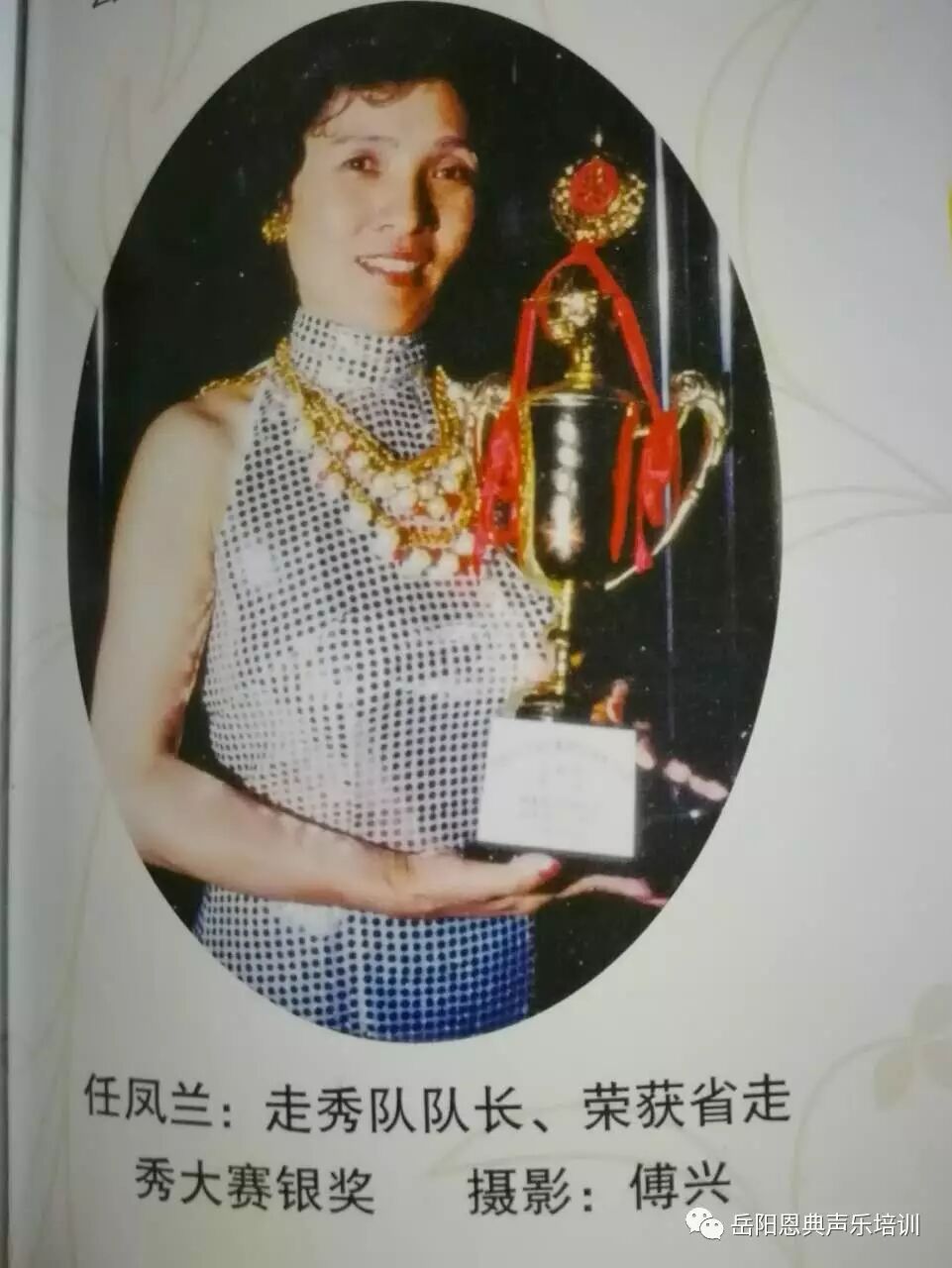 任凤兰老师是中国舞蹈家协会会员,市群众艺术馆“蓝梦模特艺术团”任团长·教训·编导。参加湖南省妇联主办“巾帼服饰大赛”荣获省中老年组第二名,参加岳阳电视台“夕阳红正能量”拍摄录制·个人专辑《凤午巴陵兰逸芬芳》,参加市群众艺术馆主办“万家灯火闹元宵”参加大型歌舞《岳阳老人靓又帅》任编导荣获节目金奖·个人创作编导金奖,首届岳阳文化艺术节,大型歌舞“岳阳明天更辉煌”任编导获一等奖。