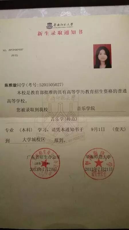 “筝趣”音乐培训机构学生,陈雅璇,2013年以古筝主考的优异成绩被华南师范大学录取!
