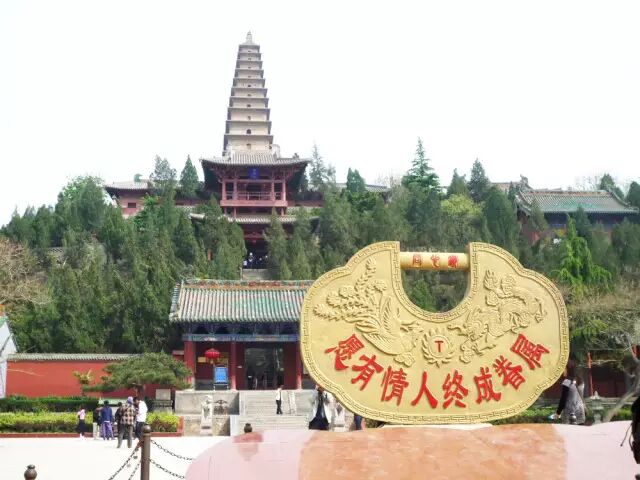普救寺位于永济市蒲州镇西厢村的塬上,普救寺始建于唐武则天时期,原名永清院,是一座十方院。元代王实甫《崔莺莺待月西厢记》中说的“红娘月下牵红线,张生巧会崔莺莺”的爱情故事就发生在普救寺内。主要景点有:同心大锁、大钟楼、莺莺塔、击蛙台、梨花深院。