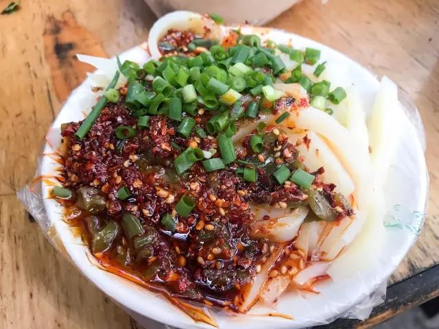 他家的凉粉、凉面都是纯手工做的,种类也很多,有传统的豌豆凉粉、黄凉粉,还有软糯的红薯凉粉。小编最喜欢吃凉皮,秘制的青椒酱,看着就流口水~