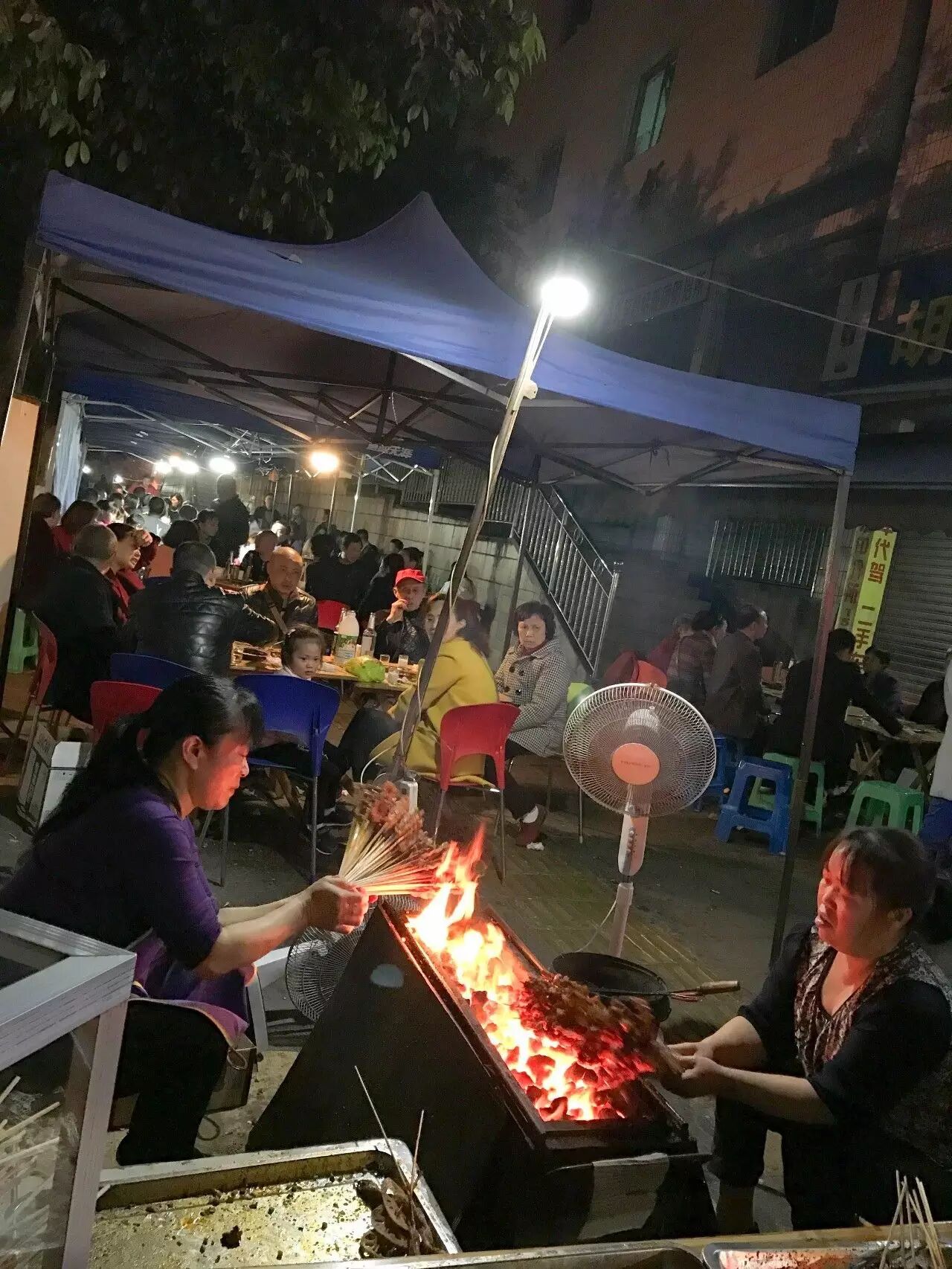 每当夜晚来临的时候,乐至的天空飘满烤肉的香气!街头小巷的各烤肉店里人满为患,一盘盘用竹签串起的烤肉,油爆爆,香喷喷,令人垂涎欲滴!