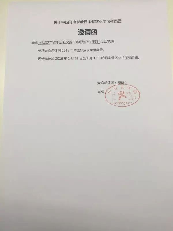 有“中国好店长”周丹保驾护航,成都葫芦娃千层肚火锅更值得您惠顾!分享我们的喜悦与感动,欢迎每位顾客经常回家!我们也将持续与大家分享此次“中国好店长”的活动后续内容!