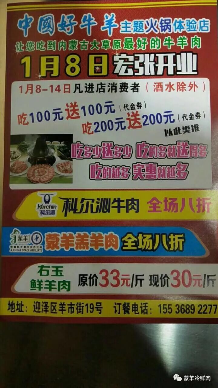 走过路过不要错过!位于解放路羊市街路口往西200米路南 火锅店中国好牛羊正式开业啦!!牛羊肉鲜美、打折力度之大让你不敢想象!不来你都要后悔!