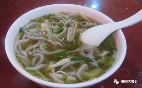 风味特色:多味浓香,柔润爽滑,刺激食欲,故多吃而不腻,爱吃辣的加一点辣椒酱则更起味,吃到末尾剩下少量粉时,加进一小碗热腾腾的海蚌汤掺和着吃,更是满口喷香,回味无穷。