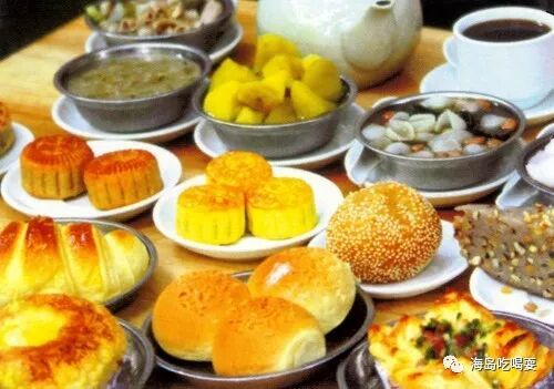 海南的大宾馆、小酒店以及茶坊皆有早茶。每天早上海南各市县大街小巷的宾馆、饭店、茶坊、酒肆、挤挤挨挨坐满了茶客,或细喝慢饮,或洽谈生意,或应答酬谢,或情侣约会,大家在互斟互让之中传递感情,交流信息。 有人总结海南早茶为"穷茶富点"。茶无名茶点,点则花样繁多,有小、中、大点和顶点、特点之分。晕菜多以鸡爪鸡翅、鸭掌鸭翼、猪脚猪尾、羊肉什为原料,还有海鲜及飞禽炖品,与广东早茶相似;素有糯米椰丝糕、肉粽(内有鸡肉、感蛋黄之类)、炒粉、琼脂冷盘等,颇见海南特色。