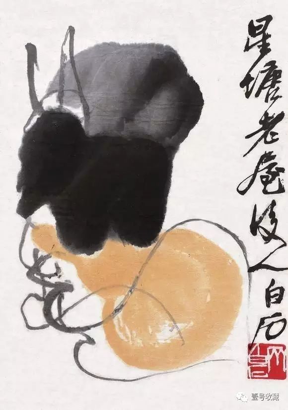 白石老人曾有诗言:劫后残躯心胆寒,无聊更变却非难。一心要学葫芦诀,无故哈哈笑世间。可以说,葫芦寄托了白石老人独特的情思,也是老人最喜画的题材,他曾说:“因喜葫芦能解笑”。