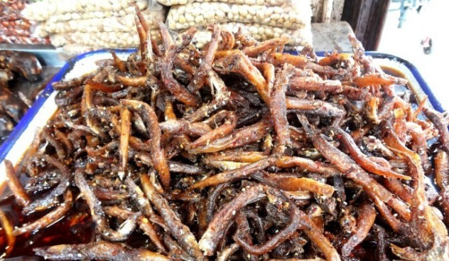 到了这个地下菜市场,放眼望去,是一家开在角落里的店铺,仔细搜寻才能在角落里发现是一家挤着好多人的地方。这是一家名为“巧厨娘”的小店,主要经营烧烤熟食,有现烤的茄子、青椒,现炸的新鲜泸沽湖青鱼、还有蒸鱼……