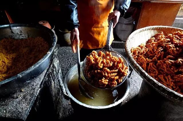 下河街有一户姓姚的人家,世代以炸麻花为业。面团头天夜里就得揉好,里面要加“小苏打”和老面,“小苏打”起发酵的作用,老面仿佛是起筋道的作用,这样炸出的麻花吃起来既蓬松酥脆,又不易散架,便于保存。