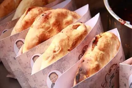 据说严太婆锅魁是以南充的锅魁做法来的,以锅盔灌凉粉为主,但严太婆锅魁种类很多,红糖锅魁、三丝锅魁、锅魁夹耳片、锅魁夹卤肉..