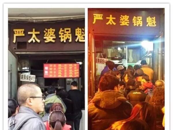 午饭时间很多人都是排着队来吃严婆婆家的锅魁,有的甚至一口气买七八个打包带走。
