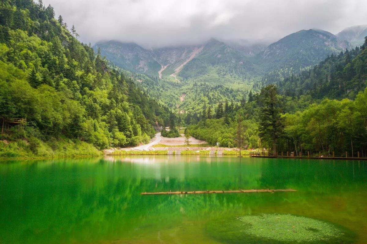 纯的发透的蓝绿色湖水,巍峨的高山,它美丽的风景就像阿尔卑斯山脚下的国王湖,纯粹的令人留恋。