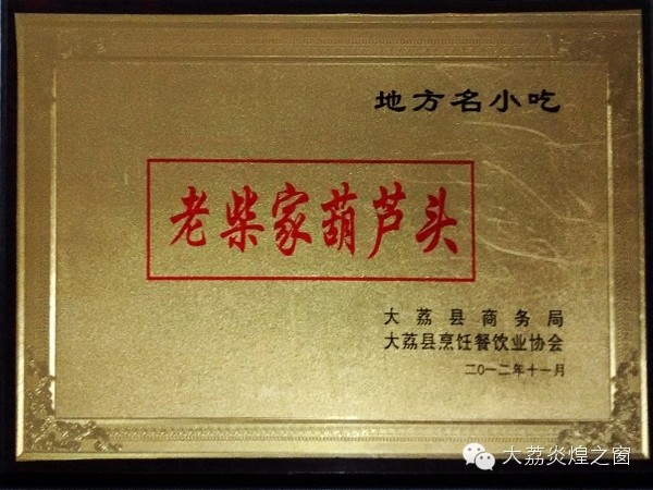 2012年,老柴家葫芦头泡馍在大荔县首届美食节上被大荔县商务局、大荔县烹饪业协会评为“大荔名优小吃”。