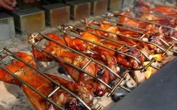 一只只油光的兔子在炭火上翻滚,兔肉分为麻辣和五香两味,兔肉入味烂软,火红辣椒配上炸过的花生米,散发跟传统成都兔肉不一样的香味。