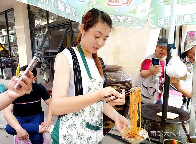 你要是认为打锅盔的,都是中老年人、男人,就大错特错了。在南充市西华路新华食府旁边打锅盔的,就是一名身材高挑、肤白貌美的美女。人们称她为“锅盔西施”。“锅盔西施”名叫曹莉,芳龄20多岁,南部县河坝人。曹莉在外打工几年后,决定回家乡创业。她拜南充“方锅盔”名师赵姐为师,学习锅盔制作技术。3个月前,曹莉出师,在新华食府旁边摆起锅盔摊摊。由于小曹形象气质佳, 锅盔口感香酥脆,生意一直不错。