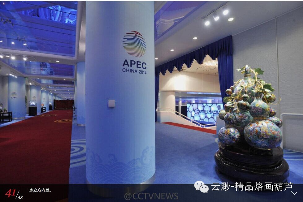 今年APEC会议在水立方隆重举行,可以看到会场一侧有一件珐琅彩的“万代葫芦”特别引人注目,小到百姓家庭,大到国际峰会,都少不了葫芦的吉祥庇佑。