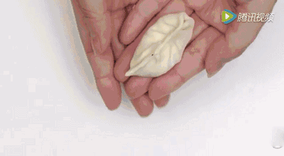 双手托住饺子皮,大拇指和食指对称,同时向饺子中间捏紧。