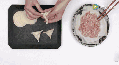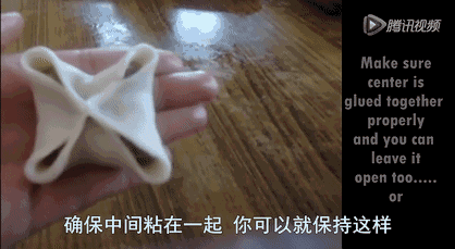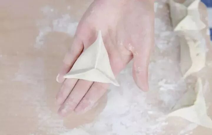 将四边裂口都粘合起来,一个四边形饺子就做好咯,超级简洁美观有木有?!