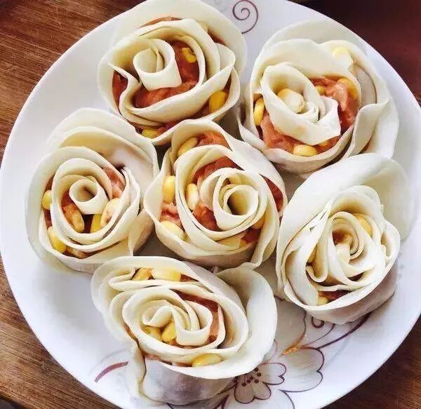 这样玫瑰花饺子就做好了,做给喜欢的人吃,想想就美呢~