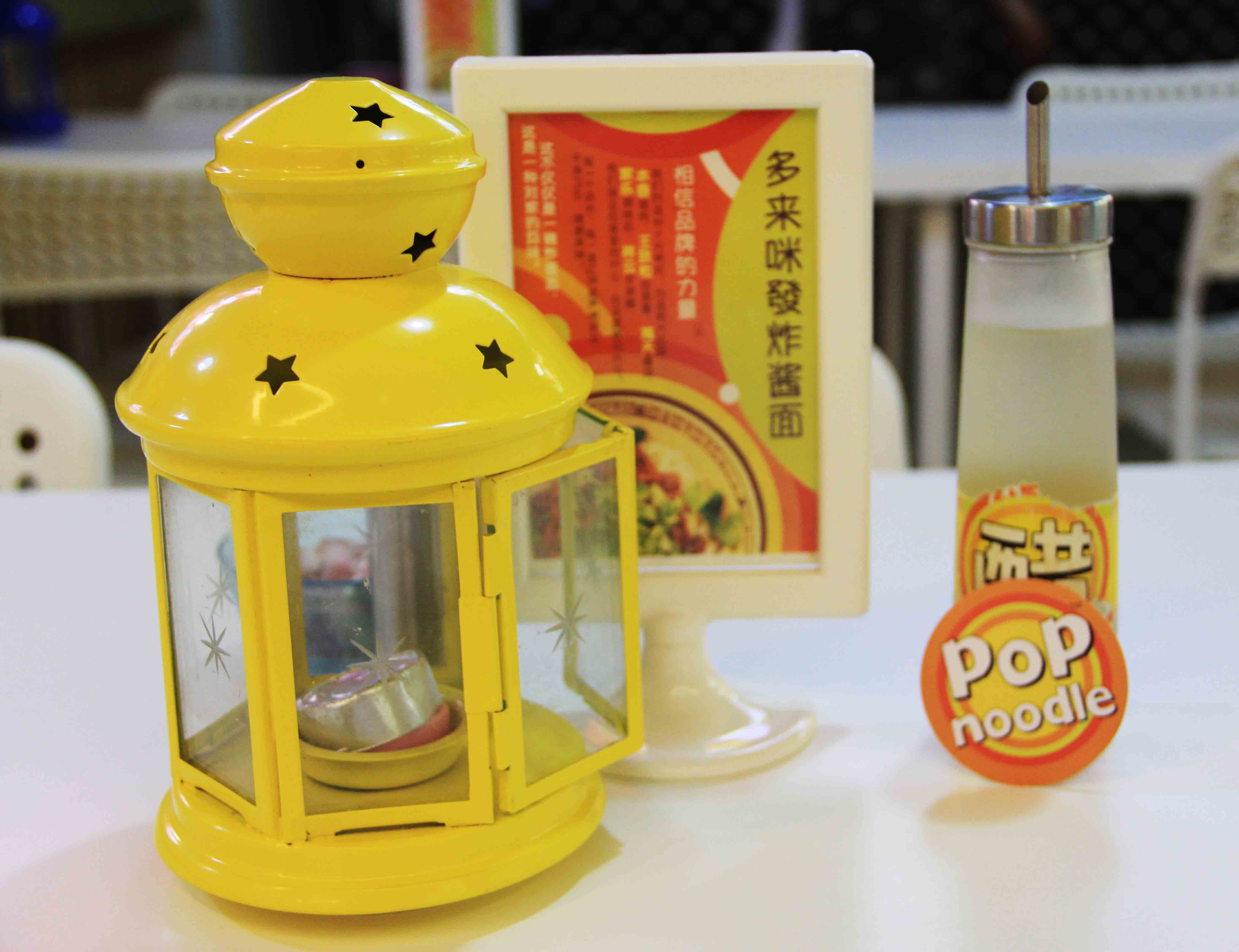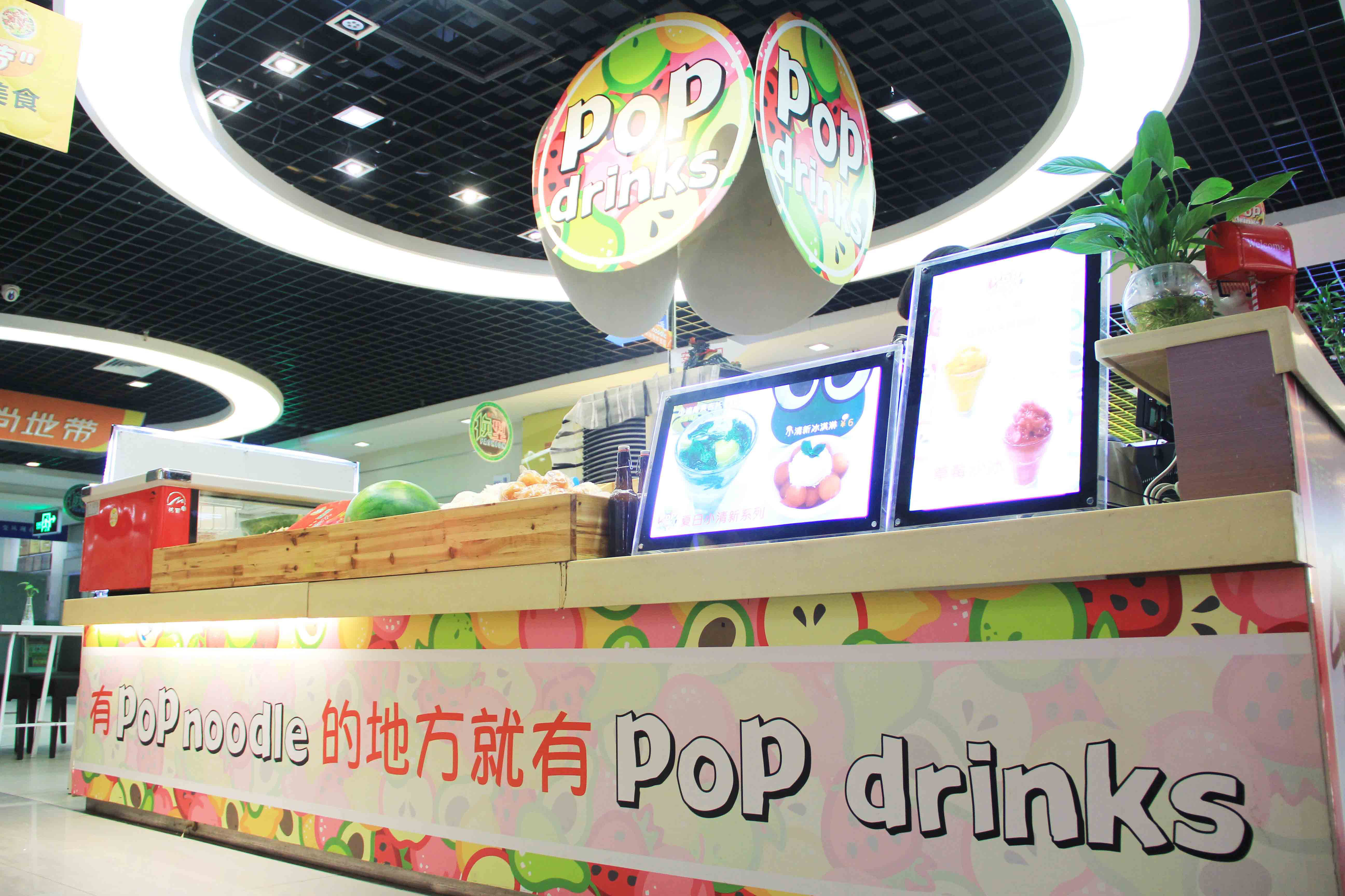 饭点时比较多,很多人就端着面坐到隔壁水吧去吃。说道隔壁,也是亮点。有 POP noodle的地方就有POP drinks ,看这个slogan就知道俩家其实有“基情”。